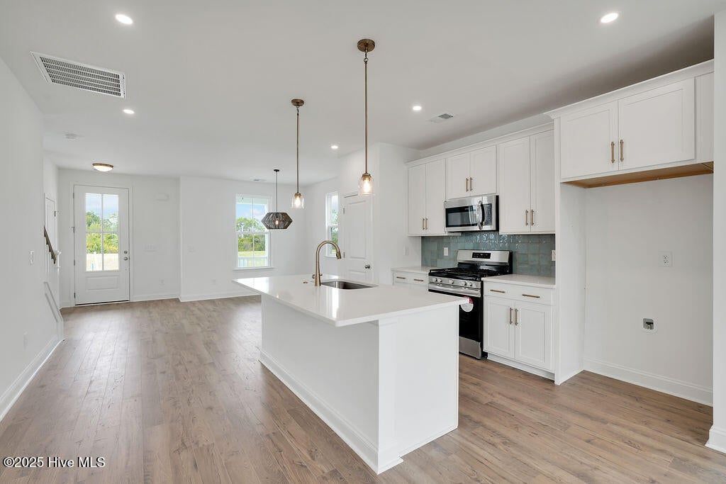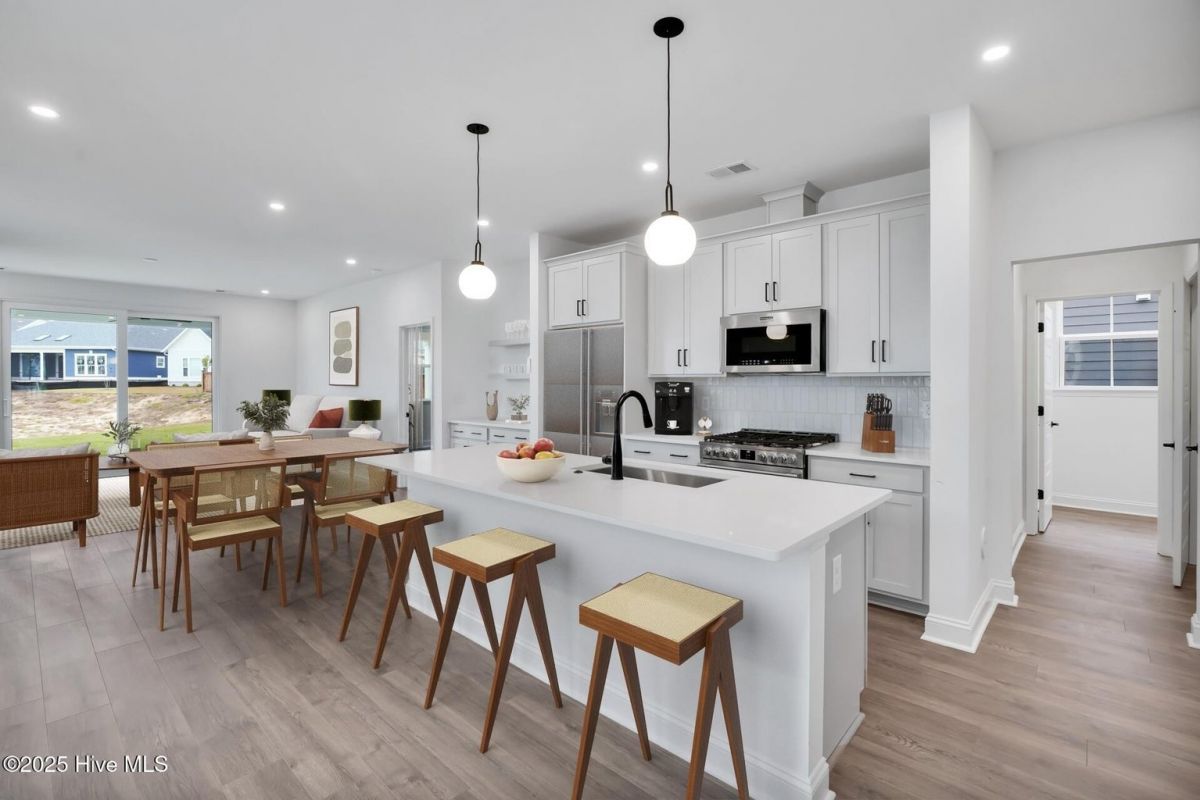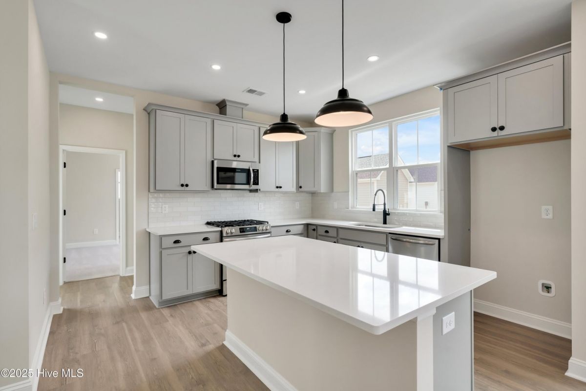 Quick Move-In home in Riverlights! The Wisteria by New Leaf Builders offers a thoughtful layout and designer finishes throughout. The kitchen is the heart of the home, featuring 42'' upper cabinets in a Frost finish, sleek Arctic White quartz countertops, ...